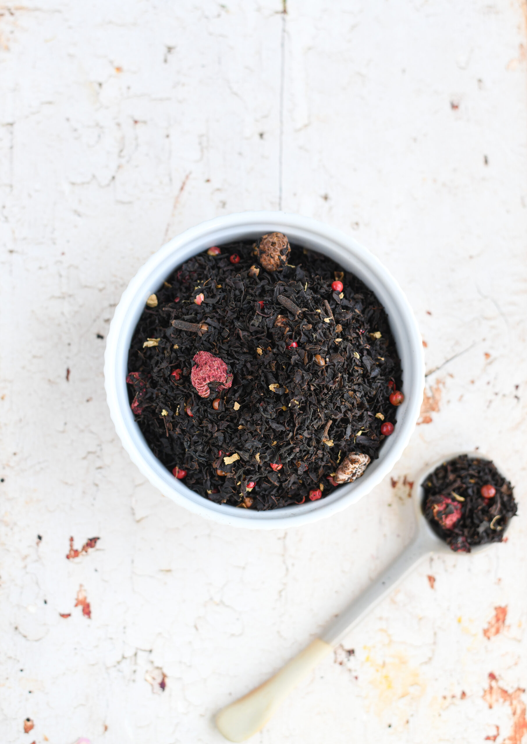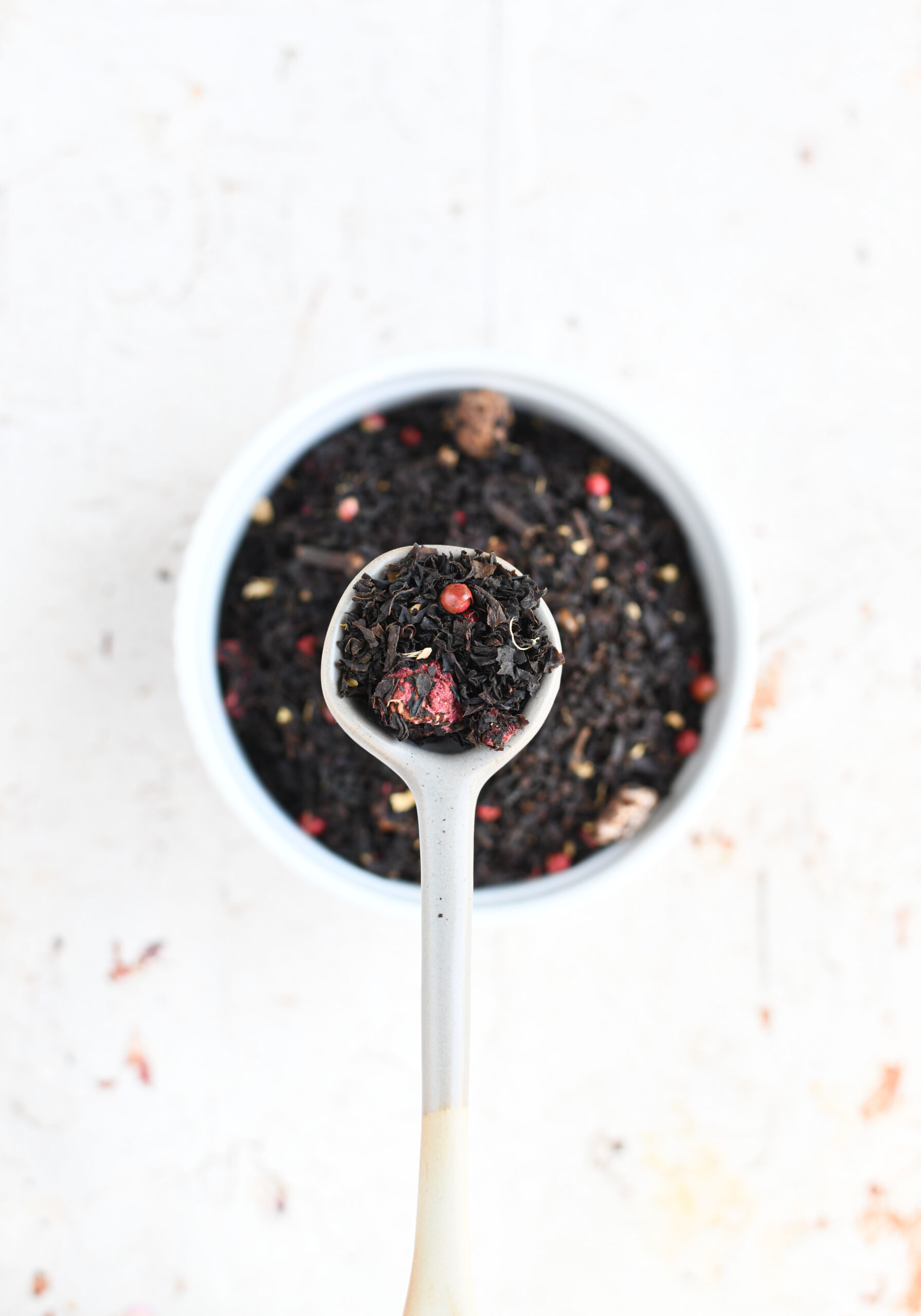 Czarna herbata z maliną, imbirem i przyprawami – rozgrzewa i dodaje energii w chłodne dni.
