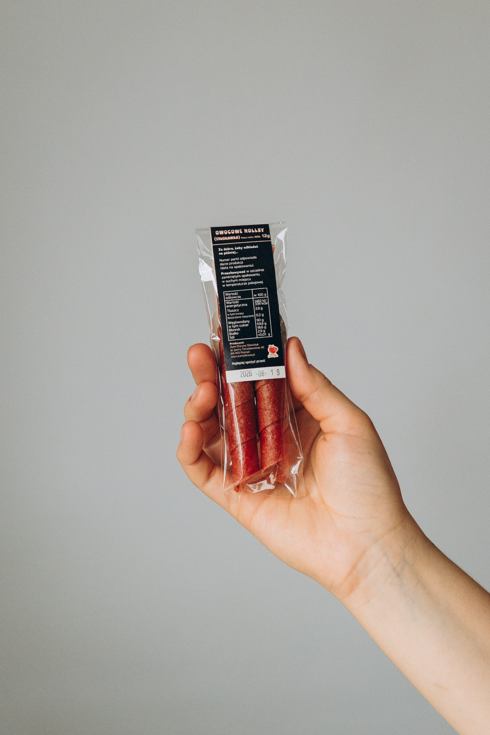 Rollsy 100% owocowe to naturalna przekąska stworzona wyłącznie z owoców. Bez dodatku cukru, konserwantów i sztucznych barwników.  Powstają poprzez delikatne suszenie i formowanie owocowego puree, dzięki czemu zachowują intensywny smak, kolor oraz część cennych składników odżywczych.