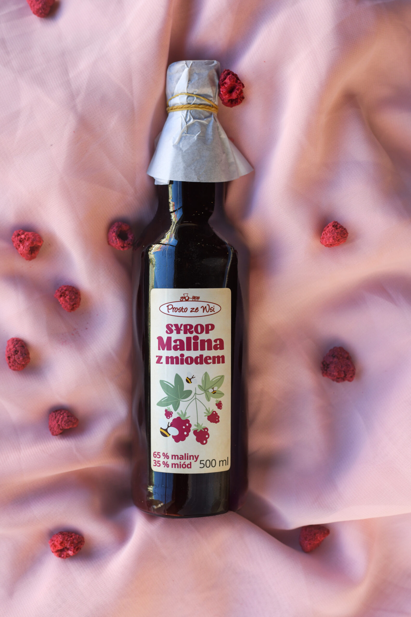 W każdej butelce syropu Prosto ze Wsi znajdziesz naturalną intensywność dojrzałych malin, przełamaną delikatną słodyczą miodu. To klasyka smaków- taka, która przypomina dzieciństwo, letnie ogrody i świeże owoce.